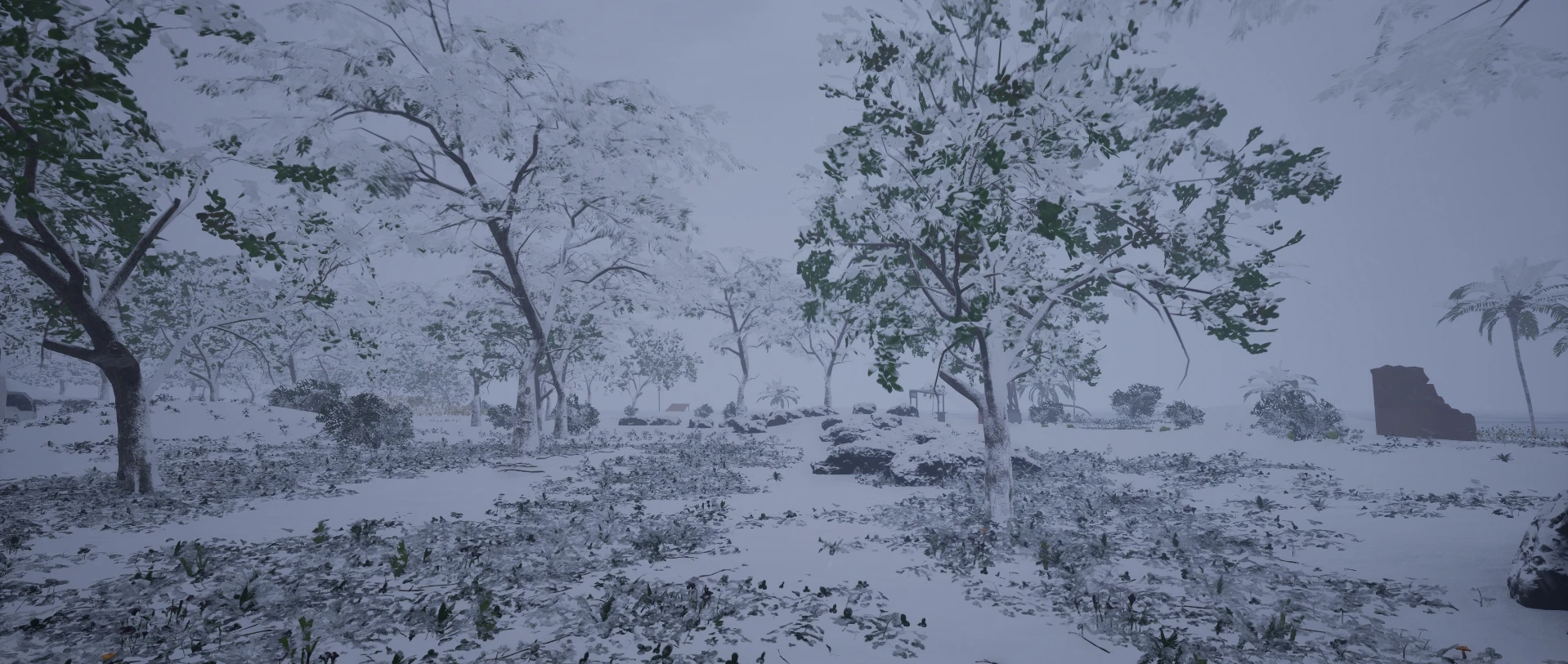 The Testing Map now has improved materials that respond better to dynamic weather. Trees and grass are affected by Wet and Snow effects from Ultra Dynamic Sky.