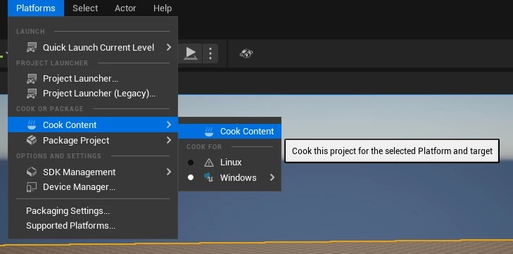 This will start the Cooking & Packaging process, which may take a while depending if the Assets were already loaded. It usually is only longer at the first time.