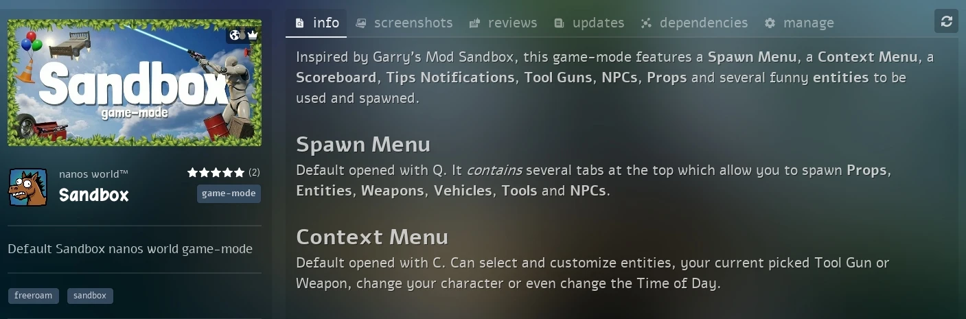 Sandbox Description in Info tab