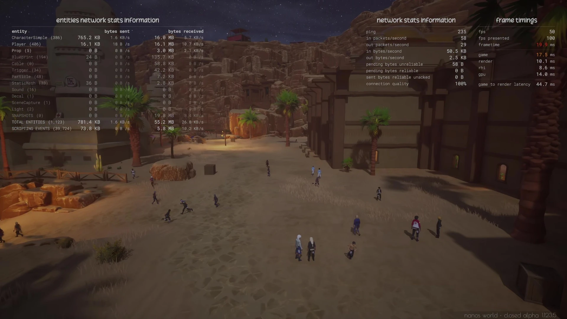 This is a massive achievement for us and the Zenkai team! We can see how well nanos world performs with hundreds of players and thousands of entities on the map! The network usage is very stable and low, and the server CPU usage is running smoothly with really few spikes!